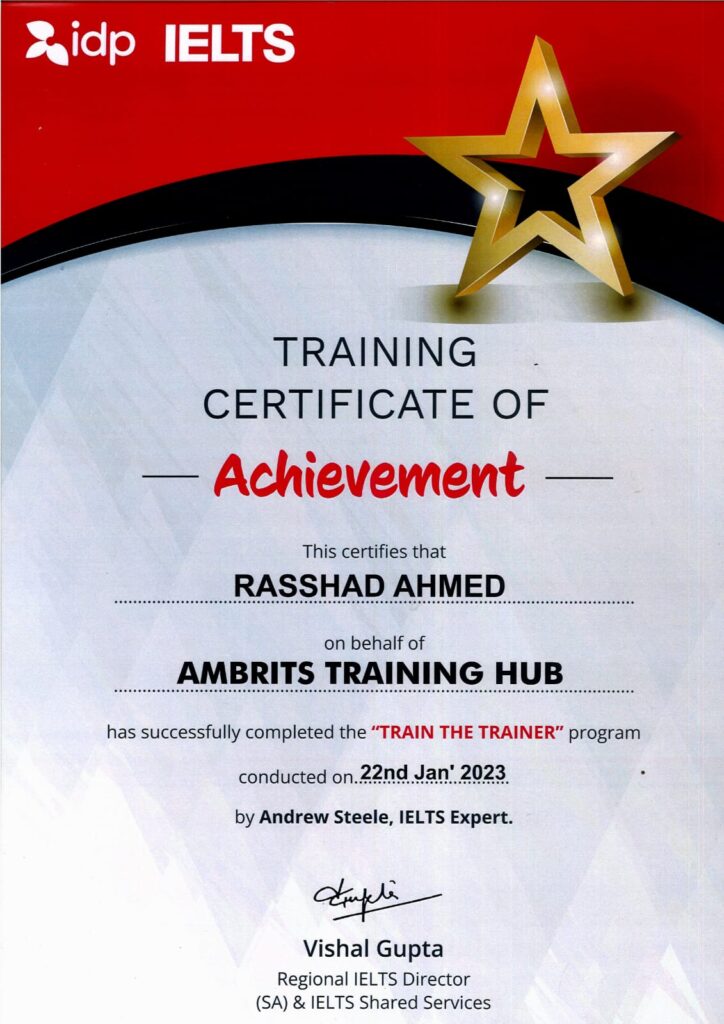 IDP IELTS Certification: Our partnership with IDP strengthens our ability to deliver effective and focused IELTS training, helping students unlock their full potential and achieve success in one of the most recognized English language proficiency tests.